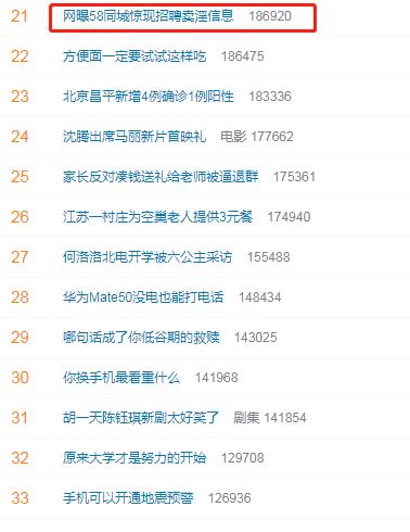#网曝58同城惊现招聘卖淫信息#上热搜 涉事公司说被盗号,但发布职位不用审核?