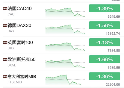 欧股收盘全线下跌,德国DAX指数跌1.59%报13188.95点,法国CAC40指数跌1.39%报6245.69点,英国富时100指数跌1.17%报7385.86点。 土耳其股指更是暴跌5%,触发市场熔断机制。