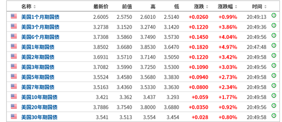 美国债市亦全线杀跌,美国国债收益率飙升。