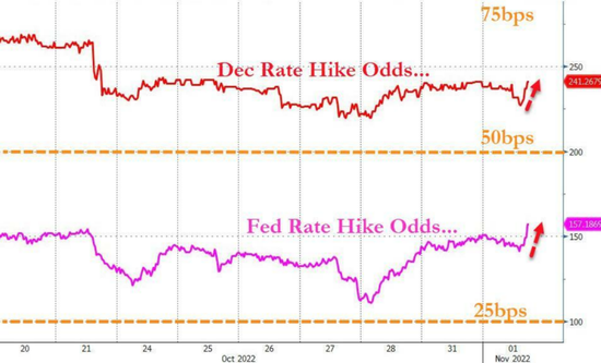 来源:金十数据 北京时间周四凌晨2点,美联储FOMC将公布利率决议及政策声明,目前市场认为美联储再次加息75个基点已成定局,但投资者越来越关注的是,美联储是否会在这次会议就后续加息步伐放出“鸽声”。 “鸽”有“鸽”道理 关于支撑美联储“转鸽”的信号可谓不少,“美联储传声筒”、记者Nick Timiraos上周五发表的一篇文章暗示:一些美联储官员担心事情进展得太快,他们需要稍微控制市场,这重新开启了美联储或于12月“仅”加息50个基点的可能性。 随后,旧金山联储主席戴利的言论也呼应了美联储理事沃勒的观点,即美联储正在“考虑放慢加息步伐,但还没有到那一步”。此外,本周加拿大央行和澳洲联储意外放缓加息步伐,这也让人们更加觉得央行们正在寻求转向不那么激进的紧缩政策。 另外,在经济方面,随着美联储提高利率,美国经济开始显示出放缓,甚至出现了衰退的迹象。美国房地产市场正在下滑,一些抵押贷款利率几乎翻了一番。房地美的数据显示,截至10月28日当周,30年期固定利率抵押贷款利率为7.08%,高于3月份的3.85%。贝莱德(633.81, -5.00, -0.78%)全球固定收益首席投资官Rick Rieder表示: “我认为(鲍威尔)会说,4次会议都加息75个基点的幅度太大了,而且加息传导至经济往往是滞后的,美联储需要后退一步,看看其影响。目前,不仅仅是住房市场,汽车行业和一些零售商也正在放缓。” 金十数据曾报道,更严重的是,鲍威尔推荐的债市指标已“亮红灯”,3个月美债收益率与18个月美债收益率曲线正处于倒挂的风口浪尖,两者之间的利差周二从四月的2.7%跌至仅0.2%;另一条广受关注的收益率曲线——3个月和10年期国债之间的差距上周自2020年3月以来首次倒挂。 随着强劲的通胀和劳动力市场数据与美国经济其他领域疲弱的迹象形成鲜明对比,美国经济面临的难题似乎正在加剧,疲软的经济前景正在推高美联储转向的预期。 鹰风或仍是美联储的主流? 尽管最近的评论为美联储12月加息50个基点的观点提供了一些支持,但需要注意的是,数据还不足以支撑联储进行转向。此前,美联储曾称,即使冒着所谓的经济硬着陆的风险,也需要抑制居高不下的通胀。 据美国劳工部公布的数据,美国9月CPI同比增长8.2%,9月核心PCE指数录得5.1%,均处历史高位,这仍表明由于通胀未能达到美联储所希望的水平,美联储将不愿放慢加息步伐,直到有证据表明价格压力正在放缓,并降至美联储2%的目标。ING分析师对此表示: “因此,即使美联储的措辞会稍微温和一些,我们仍必须保留美联储将于12月加息75个基点的可能性。事实上,通胀的粘性也表明,市场认为美联储将于12月抵达终端利率水平(4.25-4.5%)的想法可能太早了。”