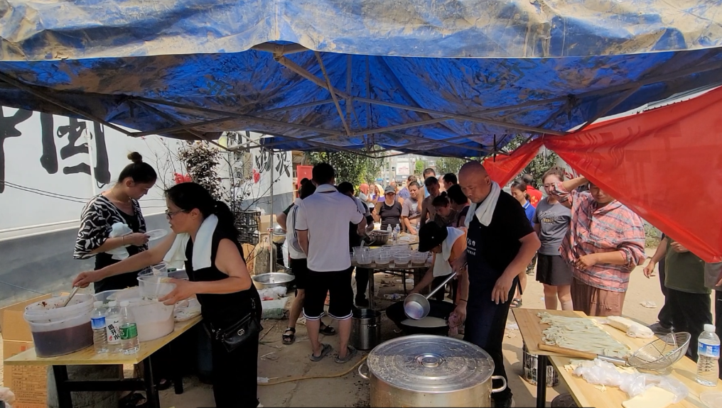 涿州市刁窝镇西茨村村委会副主任马振伟在查看村庄受灾情况。新华社记者闫起磊 摄 “趁热乎,快吃吧。” “谢谢,谢谢!” 午饭时分,在西茨村村口一侧的临时饭点,志愿者从临时搭建的铁锅中,盛出一碗碗热汤烩面,捧给排队村民。这是涿州市城区一家烩面馆免费给村民提供的。 在村口另一侧的物资捐赠点,村干部和村民正在接收刚送过来的矿泉水、方便食品等物资。捐赠点上方悬挂着的“感谢全国人民支援涿州”等一条条横幅,醒目而温暖。 “村里的青壮年和小伙子们都回来了,政府组织的供电、供水、供气队伍也在加紧抢修,还有来自四面八方的支援,这就是我们重建家园的底气。”马振伟说。
