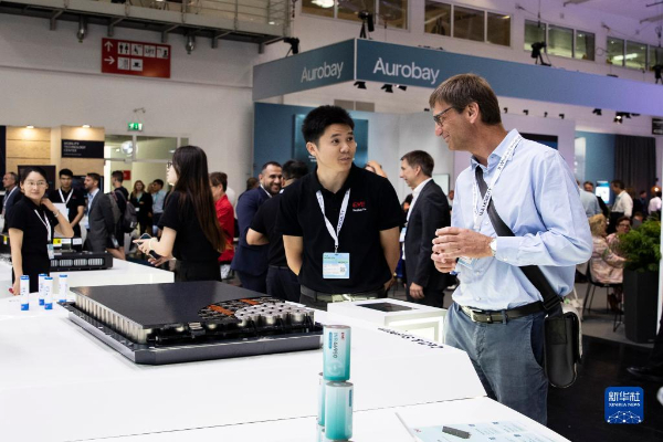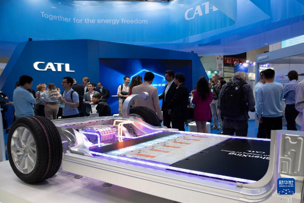 9月5日,人们在德国慕尼黑国际车展的宁德时代展区咨询洽谈。
