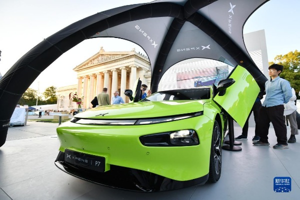 9月5日,人们在德国慕尼黑国际车展的城市公共展示区参观小鹏汽车。