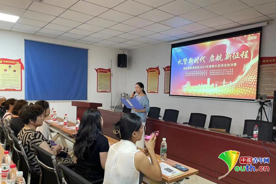 “礼赞新时代 启航新征程”主题宣讲活动。西安国际港务区供图 宣讲代表们紧紧围绕“礼赞新时代 启航新征程”主题,结合个人成长、工作实际,用真实典型、鲜活生动的事例,讲述身边故事、家乡故事和党史故事,充分展示新时代陆港人的爱党之情和奋斗之志。现场,50余名社区居民认真聆听了宣讲,为宣讲员们的精彩宣讲献上阵阵掌声。 “‘一支粉笔、两袖微尘、三尺讲台、四季耕耘’描绘着我青春的‘画卷’,我实现了梦想,也成为了一道‘光’。陕西师范大学陆港小学在西安港这片热土落地建成时,我便义无反顾地选择了这里,和孩子们在一起开启我真正的追‘光’人生。”来自陕西师范大学陆港小学的教师王宁饱含真情的讲述深深感染了现场群众。 西安国际港务区新农小学教师魏娜讲述了学校将陕西本土的非物质文化遗产红拳引入“特色体育课程”的故事,引起在场多位家长的共鸣;放弃大城市高薪职位毅然投身乡村振兴的书记郝乐也收获了来自家乡父老们最真诚质朴的肯定……他们的宣讲,既展示了西安国际港务区各行业各领域干部群众的美好精神风貌,也让大家真正理解共产党员用初心践行使命的坚持和担当。